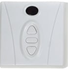 To operate the motorized screen, you can utilize either the wall-mounted controller or the remote controller, which features an infrared (IR) eye positioned at the screen's upper left corner.