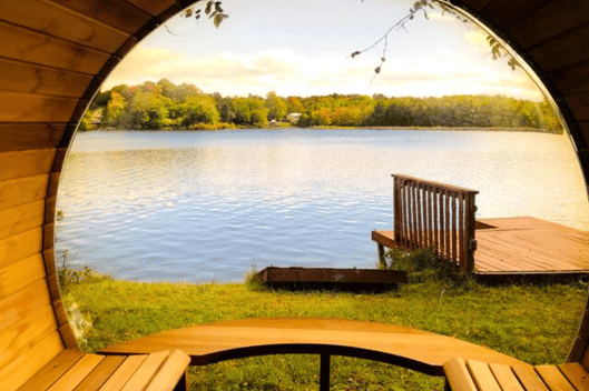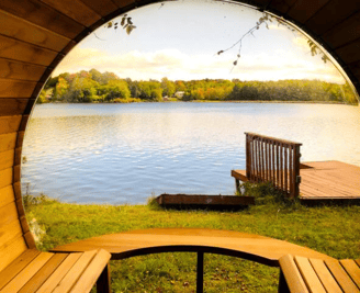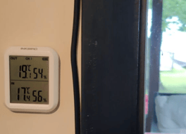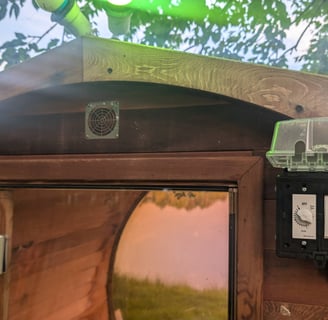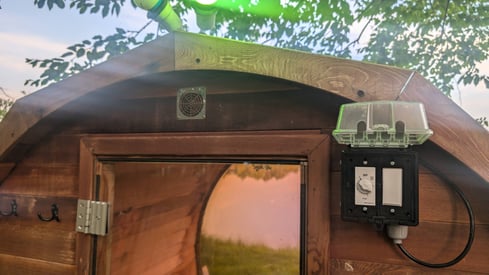 We have installed a remote thermosensor for your convenience, enabling you to monitor the temperature inside the sauna. The first line displays the sauna temperature switching between the sauna temperature and the outside temperature every few seconds, while the second line indicates the temperature inside the house.