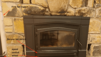 Keep the doors closed while in use. Inside, there's a fan to assist wood burning. To activate the fan, switch on the white button situated on the left side of the fire pit, and then locate the switch on the fireplace itself, as shown in the attached photos. Additionally, there's a wheel switch to regulate fan speed. Once the fire is steady, feel free to switch off the fan."